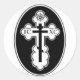 St. Olga Orthodox Cross Classic Round Stickers mit dem St. Olga Orthodox Cross. Verwenden Sie diese orthodoxen Kreuzaufkleber zum Siegel von Umschlägen oder zur Verzierung anderer Gegenstände oder Papierartikel. Sie sind perfekt als Umschlag Aufkleber für Ihre orthodoxe Hochzeitseinladung.