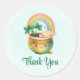 Vielen Dank an die Aufkleber, mit einer bezaubernden Abbildung mit einem lächelnden grünen und goldenen Topf mit einem niedlichen Regenbogen, einer glücklichen Wolke und einem grünen Klee.
