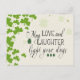 Die Postkarte des St. Patrick's Day zeigt ein Design von grünen Kleeblättern. Es enthält einen irischen Segen, "Mögen Liebe und Lachen Ihre Tage erhellen." Die Begrüßung, das Gebet kann für eine handgeschriebene Nachricht personalisiert oder gelöscht werden, und die Karte kann für viele Gelegenheiten verwendet werden.