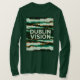“DUBLIN VISION” commands the center in bold white caps as green and orange graphic bars explode outward in a tunnel of motion. Subtle glitch offsets and chromatic streaks add retro-futuristic edge, creating a kinetic burst of drama, focus, and urban intensity.