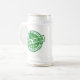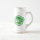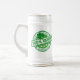 Heiligen Patrick Tageslustiger Bier Stein, der einen GrungegummiBriefmarkenentwurf auf Grün mit Kleeblättern und lustigem Slogan kennzeichnet - offizielles St Patrick trinkendes Team - 100% Iren.