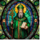 "st patrick irish saint", "patron saint of ireland", "dark emerald green", "christian stained glass art", "holy sacred christianity religion", "religious priest pope man", "catholic church father confirmation"