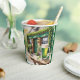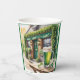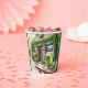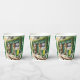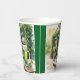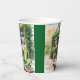 A watercolor painting of a charming Irish pub decorated for St. Patrick's Day, with emerald green shamrocks and festive banners adorning the rustic wooden exterior. The pub features a classic dark green door with brass fixtures and window boxes overflowing with vibrant green ivy and white flowers. On a small outdoor table sits a frothy green beer with a perfect foam head, surrounded by delicate four-leaf clovers scattered across the weathered wood surface. The entire scene is rendered in soft, flowing watercolor washes with gentle bleeding edges, creating a dreamy atmosphere filled with warm golden sunlight filtering through the Irish countryside.