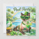 This stylish pool party invitation features a glamorous Siamese cat dressed in festive green, pearls, and statement sunglasses, relaxing poolside in a bright, modern watercolor style. Playful yet chic, this design is perfect for celebrating St. Patrick’s Day with a fun, fashionable twist.