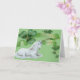 Eines St Patrick Tageskarte mit einem Unicorn und Kleeblättern.