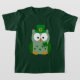 Niedliche und entzückende Eule mit seinem kleinen Koboldhut in den Schatten von Dunklem und von hellgrünem, mit einer gelben Schnalle. Dieser Vogel ist bereit, St Patrick Tag in der Art zu feiern. Grünen Sie auf Grün mit einem hellfarbigen Kleeblatthintergrund. Groß für Tierfans und Eulensammler. Entwurfs-Copyright © www.CuteComfy.com 2013