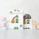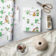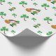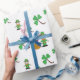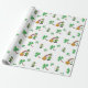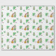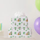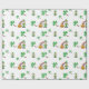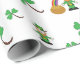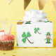 Kleiner grüner Kobold mit Topf Gold am Ende des Regenbogens und der Kleeblätter auf weißem Verpackungspapier für St Patrick Tag.