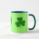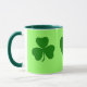 Eine Tasse mit einem Kleeblattentwurf; gerade rechtzeitig für St Patrick Tag!