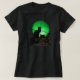 Eine Silhouette der Schwarzen Katze von Théophile Steinlen für den Le Chat Noir Club in einem modernen Rahmen für den St. Patrick's Day mit der Katze mit grünen Augen, einem grünen Vollmond, einer Weinrebe mit Kleeblättern und einem Goldtopf.