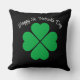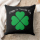 Das in schwarz gehaltene Kissen mit Kleeblatt passt perfekt zum St. Patrick's Day. Passen Sie dieses Objekt an oder kaufen Sie, wie es ist. Börsenbild vecteezy.com