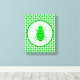 Diese phantastische Leinwand zeigt ein grafisches Bild einer niedlichen kleinen grünen Biene mit hellgrünen Streifen und grünen Antennen. Diese niedliche Hummel ist bereit, St. Patricks Day zu feiern. Die Biene ist von hellen und dunkelgrünen Kleeblättern umgeben, die das Design vervollständigen.