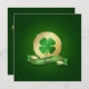 St. Patrick's Day Illustration mit einer goldenen Münze mit Kleeblatt und einem Band zeigt "Happy St. Patrick's Day" in modernen, fett goldenen Buchstaben auf einem eleganten grünen Hintergrund.