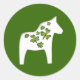Das Design auf diesem Aufkleber stammt von einem hölzernen Pferd, das von Julia Morrill geschnitzt, entworfen und gemalt wurde