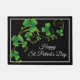 Doormat mit schwarzem Hintergrund und weißem Rand mit einem Happy St Patrick's Day Druck.
