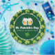St. Patrick's Day Teller, die sagen: offizielles Trinkerteam mit einem personalisierten Namen. Illustriert mit 2 Tasse Bier in einem grünen Kreis. Ein sich wiederholendes Muster mit Kleben im Hintergrund.