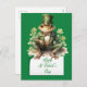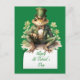 Feiern Sie am Saint Partick's Day mit dieser lustigen Postkarte im irischen Stil, auf der ein Frosch in grüner Kleidung dargestellt ist, einschließlich eines hohen Hutes mit einem goldenen Schnabel, der sich hinsetzt.