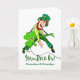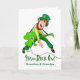 Glückliche St. Patrick's Day Grußkarte für Großeltern, Großmutter und Großvater. Ein Kobold Rocks On mit seiner elektrischen Gitarre im Kleeblatt auf dieser St. Patrick's Day Grußkarte. Eine lustige Karte, die perfekt für den Musikfreund in Ihrem Leben ist. Bild und Vers Copyright © Shoaff Ballanger Studios, 2024.