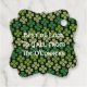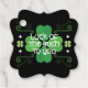 Drei vierblättrige Kleeblatts mit einem verzierten Rahmen vorne und einem rundum gelungenen Kleeblatt auf der Rückseite. Einfach mit einem Namen oder einem eigenen Satz anpassen.
