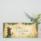 Ein verträumtes Mädchen in einem grünen Kleid und einem Top-Hut hält ein Kleeblatt in der Hand, umgeben von üppiger Vegetation und festlichen Dekorationen. Das perfekte Motiv für den St. Patrick's Day mit einer warmen, nostalgischen Atmosphäre.
