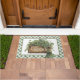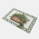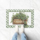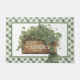 Diese fantastische St. Patrick's Day-Türmatte zeigt eine Kleebox mit dem Wort "glücklich" auf der Vorderseite. Es gibt einen passenden grün-weißen Gingham-Rahmen um den Rand.