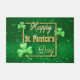 Eleganter goldener Glitzer glamouröse St. Patrick's Day Illustration mit 3D-Goldtypografie in einem goldenen Glitzer-Rahmen mit klassischem Kleeblatt Klee auf einem wertvollen grünen Hintergrund.