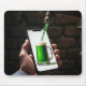Eine Hand hält ein Smartphone, das eine Tasse grünes Bier zeigt, während ein stich grüne Flüssigkeit direkt ins Telefon zu gießen scheint.
