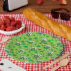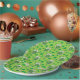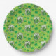 Ein lustiges Muster grüner Tasse auf grünem Hintergrund mit Kleeblättern und weißen Punkten für Saint Patrick's Day Geschenkverpackung und Party dekoriert!
