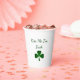 Happy St. Patrick's Day Kiss Me I'm Irish Paper Cup, mit einem niedlichen grünen Kleeblatt Design mit einer grünen Grenze auf einem weißen Hintergrund. Mit der Schriftzeichen-Schrift können Sie Ihren eigenen Text anpassen. Ideal für Ihre St. Patrick's Day Party Feier.
