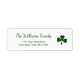 St. Patrick's Day Rückkehr-Adresse-Label, mit einem einfachen grünen Kleeblatt und Schrift Typografie-Design. Mit anpassbarer Schrift können Sie Ihren eigenen Text hinzufügen. Eine lustige Ergänzung zu Ihren Ferienkarten und Einladungen.