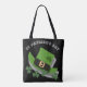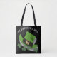 Diese Tasche ist in einem zentralen Design eines großen grünen Lekobobobaun-Hutes mit Kleeblättern auf schwarzem Hintergrund gestaltet. Ein tolles Accessoire.