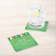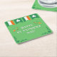 Dieser Untersetzer zeigt eine niedliche St. Patrick's Day Typografie in Weiß mit Kleeblättern und der Flagge Irlands.