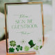 Verleihen Sie Ihrer Bridal Shower mit unserem lustigen grünen Gästebuch-Schild einen besonderen Rahmen. Mit einem zeitgenössischen Touch gestaltet, fügt dieses Dekorationsstück Ihrem Fest eine elegante Note hinzu. Es ist perfekt für eine St. Patrick's Day-themed Bridal Shower.