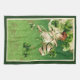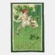 St. Patrick's Day Handtuch mit einer schönen irischen Klasse, die keine Angst hat, in die Luft zu fliegen auf einer Pfeife mit grünem Band für Geschirr. Umgeben von Kleeblatten ist sie ein zauberhafter St. Patrick's Day Gruß.