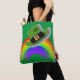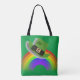 Diese nützliche St Patricks Day Tasche enthält einen bunten Regenbogen und Leprechauns Hut auf einem üppig grünen Hintergrund. Nicht nur zum St Patricks’s Day, sondern auch ein buntes Accessoire für das ganze Jahr.