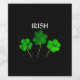 Gedruckt mit drei grünen Kleeblatten aus irischen Kleeblatt-Pflanze in solidem schwarzem Hintergrund mit Textvorlage "Irish" , für Saint Patrick's Day. Sie können den Text oder die Hintergrundfarbe nach Belieben ändern.