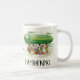 Diese individuell gestaltbare Irish Shamrocking-Tasse besticht durch ein fröhliches Vintages St. Patrick's Day Top of the Morning to You Design mit dem Zeppelin-Luftschiff aus Kleeblatt, das ursprünglich um 1905 von Ellen Clapsaddle, einem berühmten Postkartenkünstler der damaligen Zeit, geschaffen wurde. Sie können die Rechtschreibung leicht ändern; Stil, Farbe und Größe des Schriftartes können Sie mit den Schaltflächen Anpassen und Bearbeiten von Zazzle ändern, oder Sie können den Namen ganz entfernen. Das Design ist auf beiden Seiten der Tasse bedruckt.