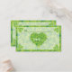 St. Patrick's Day Irish Hochzeitsfeier Platzkarte, mit einem grünen Weiß und einem eleganten Herz aus irischem Grün Glück Klee/Kleeblatt.