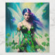Digital ai artwork of a St Patrick's Day Irish fairy wearing a green and blue dress with three leaf clover and butterflies.