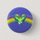 Hübscher Knopf für St. Patrick's Day mit meinem originalen Design eines Kleeblatts in einem leuchtenden smaragdgrünen Herzen mit einem bunten Regenbogen und blauen Himmel.