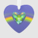 Verzierung mit meinem einzigartigen, grünen und blauen 3D-Design eines Kleeblatts in einem leuchtenden smaragdgrünen Herzen mit einem bunten Regenbogen und blauen Himmel.