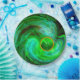 Elegantes, farbenfrohes, psychedelisches Fraktal Design in Aqua-blau-grün aquamarin türkisfarben mit einem leuchtenden 3D-Edelstein, von Bulgan & Alessandro Lumini gerendert und elaboretiert.