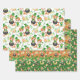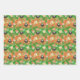 Dieses Set aus Packpapier besteht aus einem Lack und Glas in grün mit Hüten gekleidet, mit einem Topf Gold, einem glücklichen Hufeisen und einer niedlichen orangefarbenen Katze. In verschiedenen Designs auf einem weißen Hintergrund, einem grünen Hintergrund, einem orangen und grünen Hintergrund. Dies wäre besonders niedlich, um das Geschenk eines Kindes zu verpacken.