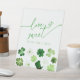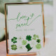 "Love is sweet , please take a treat" sign with green shamrocks for a Bridal Shower St. Patrick's Day theme: