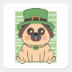 St. Patrick's Day Mops Dog Lucky Kleeblatt Quadratischer Aufkleber