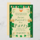 St. Patrick's Day Party Einladung - Feiern Sie den Glückstag mit dieser fröhlichen Einladung, die von irischen Villen inspiriert wird! Mit seinen ikonischen Elementen wie Kleeblättern, grünen Hüten und Bierhütten eignet sich das Hotel ideal, um Freunde und Familie zu einem unterhaltsamen Party einzuladen. Ideal für den Druck oder die digitale Nutzung, um den festlichen Geist dieses besonderen Anlasses zu teilen.