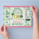 [ALLE Texte sind EDITABLE, mit Ausnahme von ZWEI Glücklichen] Thema: St Patrick's Day Rainbow Kleeblatt. Gelegenheiten: Geburtstagsparty für Kinder. Stil: Niedlich, elegant, Boho. Farben: Grün, Rosa, Gold, Weiß. Grafiken: Regenbogen, Wasserfarbe, False Gold.