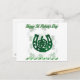 Eine Postkarte zum St. Patrick's Day mit Pferden, Pferden, Pferden und Kleeblättern.