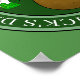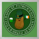 Ein lustiges Plakat für St Patrick's Day. Das mittlere Bild ist eine glückliche braune Kartoffel mit einem großen Lächeln. Er trägt einen grünen irischen Hut mit einer schwarzen Band und einer gelben Schnalle. Auf der einen Seite hält er eine irische Flagge und auf der anderen einen Pint grünes Bier. Der Hintergrund ist grün mit weißen Schriftzeichen am Rand, die Happy St. Patrick's Day lesen.