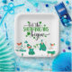 Lass, die Shenanigans beginnen Sprichwort in Skripttypografie, St. Patrick's Day Party Papier Teller mit tanzenden Party Goers in grün mit Kleeblättern.