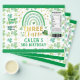 [ALL text is EDITABLE, außer DREI IST EIN CHARM] Thema: St Patrick's Day Rainbow Kleeblatt. Gelegenheiten: Geburtstagsparty für Kinder. Stil: Niedlich, elegant, Boho. Farben: Grün, Gold, Weiß. Grafiken: Regenbogen, Wasserfarbe, False Gold.